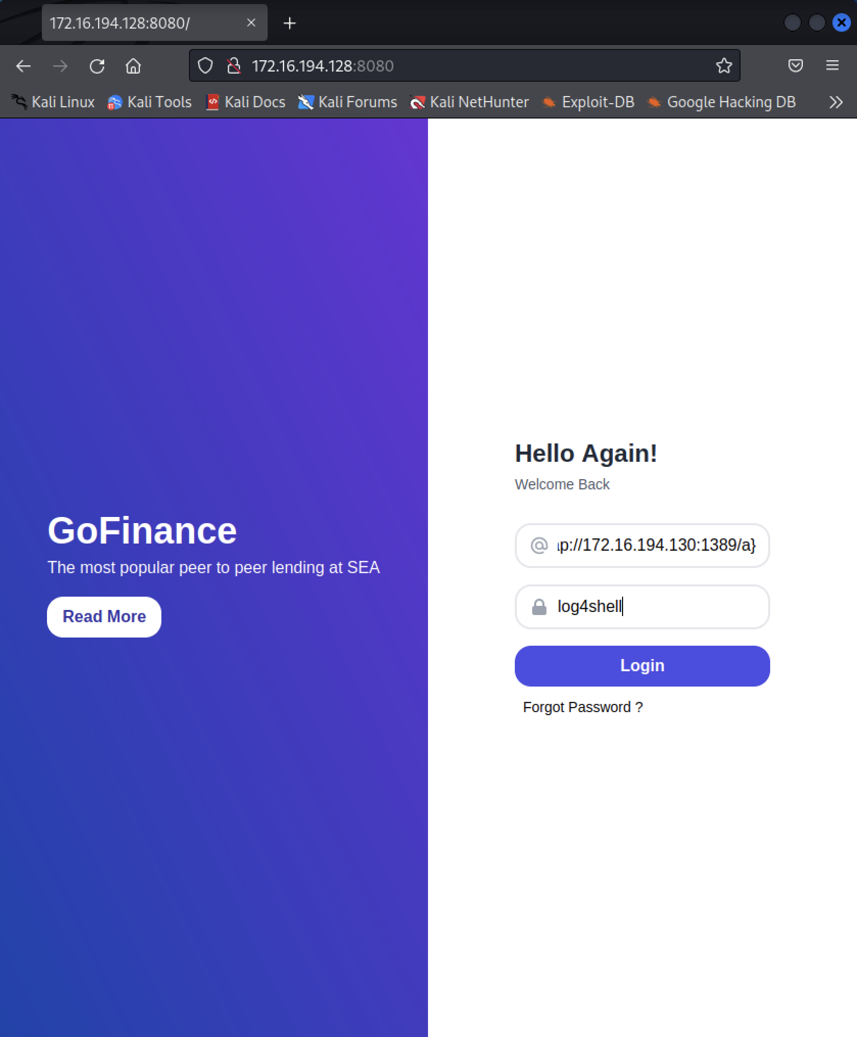 There are several Log4Shell POCs on GitHub now. For this particular example, we will be using Kozmer’s POC. The setup is pretty straightforward. Requirements will be a laptop or Macbook with some type of virtualization software installed, one Kali VM, and one Ubuntu VM with Docker installed.